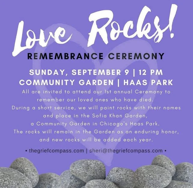 In 2018, after a ritual of walking around the garden’s small, beautiful path, attendees were invited to share names and stories of their loved ones as chose. We wrote messages on river rocks and buried them in the garden where they remain today.